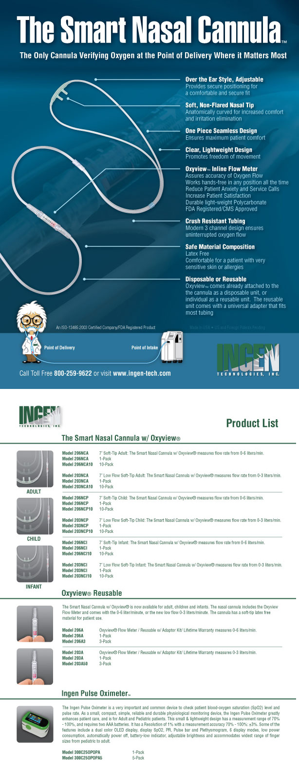 Learn more about Ingen’s medical products by downloading the brochure sheets below. Ingen is committed to meeting the needs of its customers through ongoing product innovation and support. Ingen Technologies has implemented and maintains an effective, stringent, and rigorous quality assurance system.